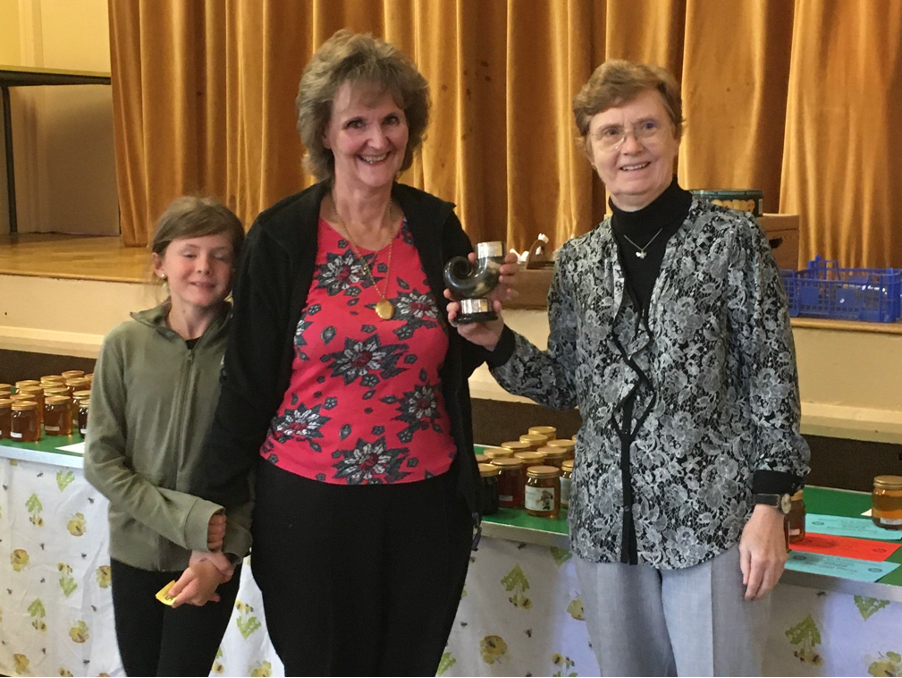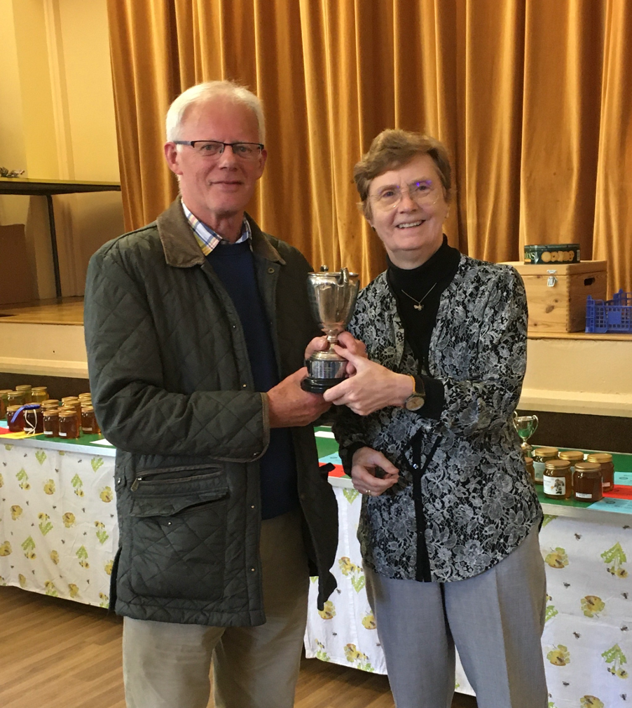 A Drinking Horn for the best mead and the Trenear Trophy for the highest points in the confectionery classes were awarded to Karen Scales. The Alan Simmons Memorial Cup for the best comb for extraction was awarded to Chris Courtney